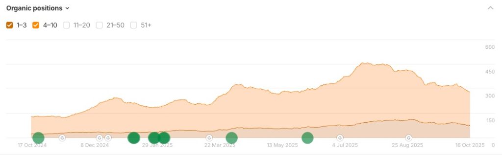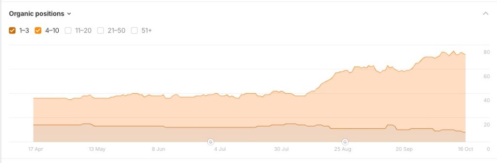Massive growth throughout the year. From 2000 page 1’s to almost 8000 page 1’s and 4000 top 3’s.